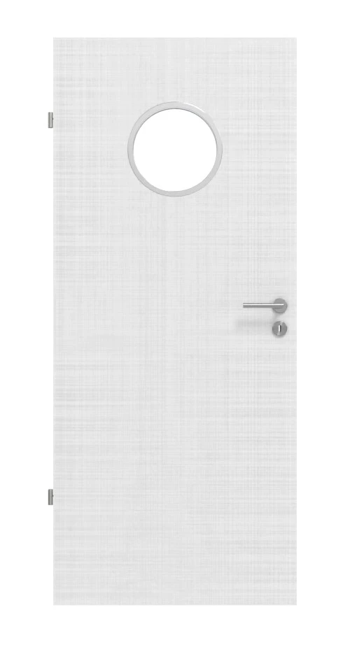 Die feinen Linien des natürlichen Leinendekors wirken dank der eingeprägten Struktur authentisch. Einen nautischen Look erhält das Türblatt dank des runden Lichtausschnitts im oberen Bereich.