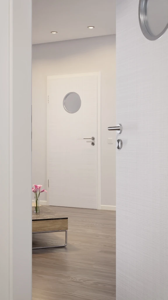 Langlebiges Türmodell im schicken Look: Ein elegantes Wohnraumdesign ist Ihnen dank der Innentür LA Bullauge aus der Kollektion Proline Concepto von Hörmann sicher.