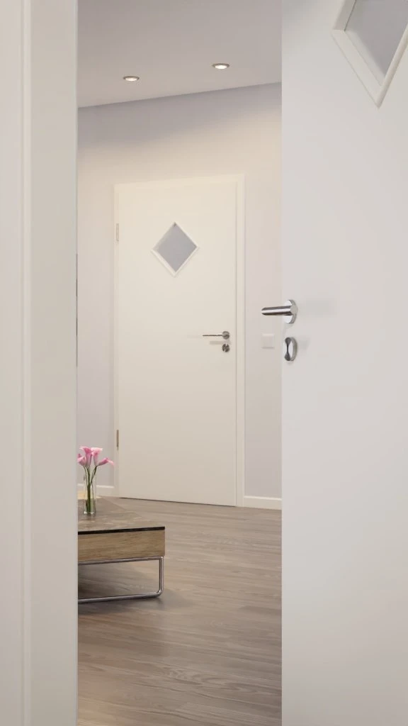 Der Lichtausschnitt in Rauten-Form ist das optische Highlight des Türblatts. Er ist eine interessante Alternative zum Bullauge und lässt ein wenig Helligkeit in Ihren Raum.