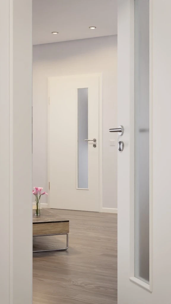 Auf das hölzerne Türblatt ist eine weiße Lackbeschichtung aufgetragen. Dank der seidenmatten Struktur punktet diese durch einzigartige Eleganz. Der schlossseitig ins Türblatt eingelassene Glasausschnitt garantiert lichtdurchflutete Räume.