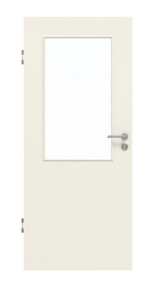 Das weiße Lackfinish zeichnet sich durch eine seidenmatte Struktur aus. Im oberen Bereich des Türblatts befindet sich ein großer Glasausschnitt, durch den Licht in Ihr Zuhause gelangt.