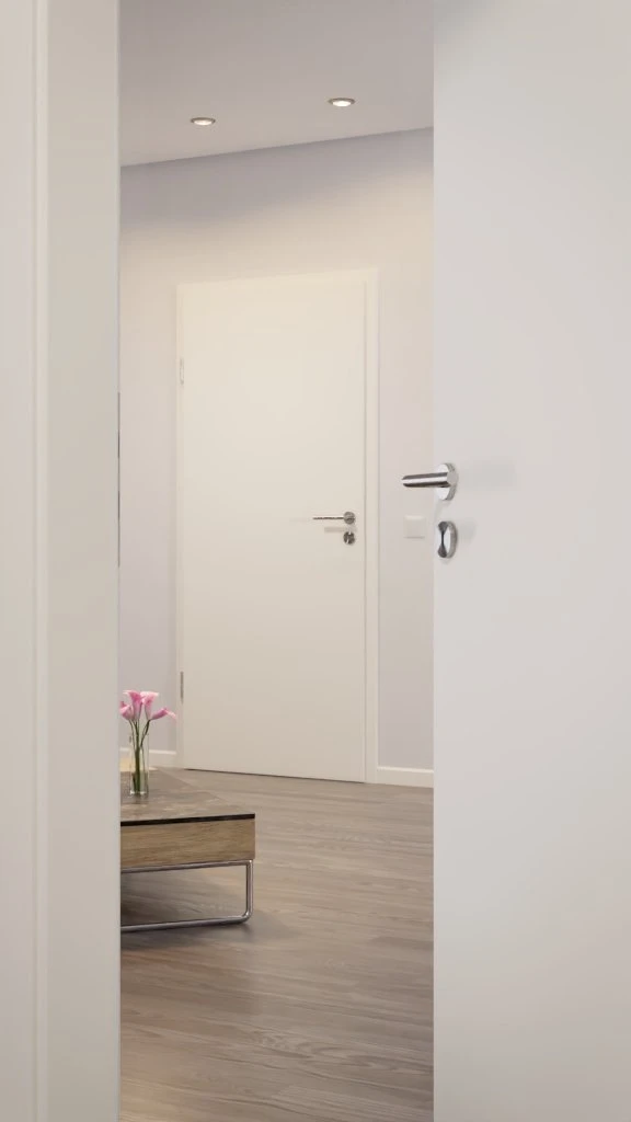 Wohnräume im stilvollen Look: Die ProLine-Innentür in Reinweiß RAL 9010 von Hörmann verschönert Ihr Zuhause.