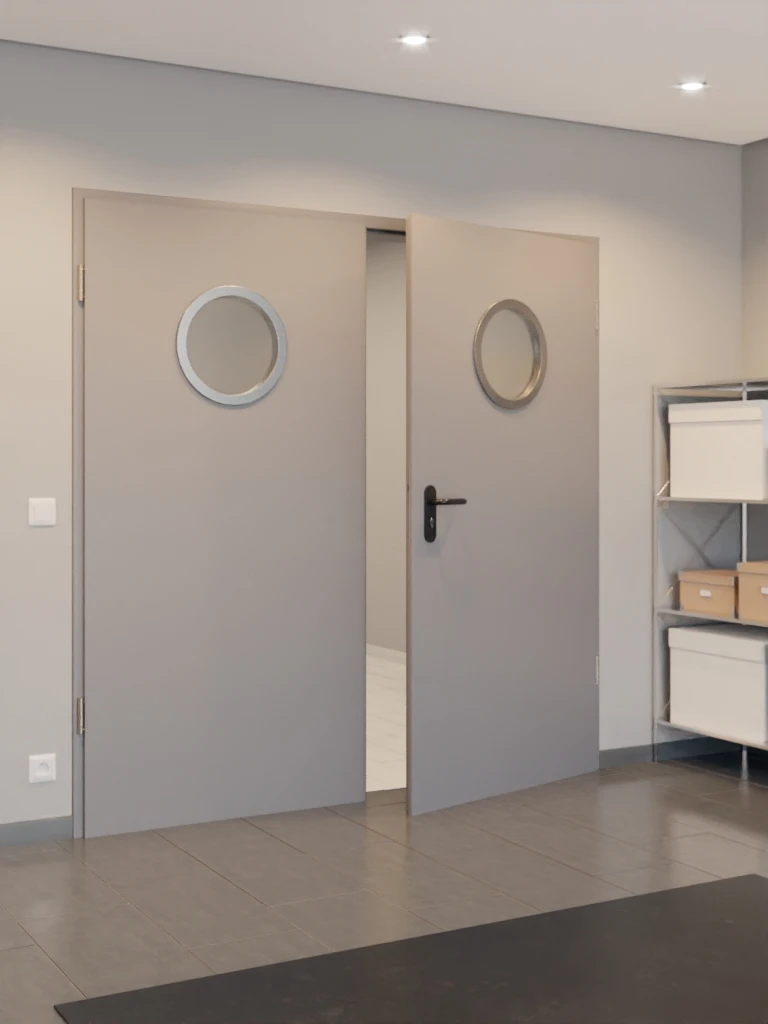 Das Bullauge im oberen Bereich des jeweiligen Türblatts lässt Licht hindurch. Gleichzeitig erhalten Sie auf diese Art und Weise einen Blick auf die andere Seite der Tür.