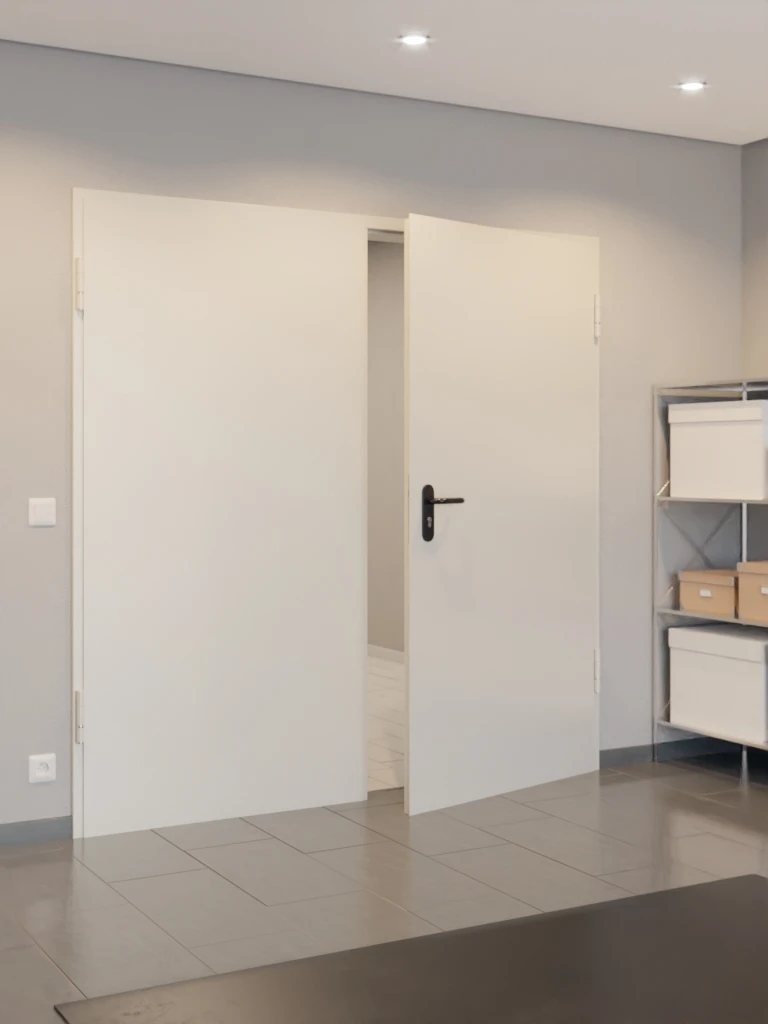 Zweiflügelige Stahl-Mehrzweck-Innentür D65-2 OD mit Eckzarge und Türdrücker: