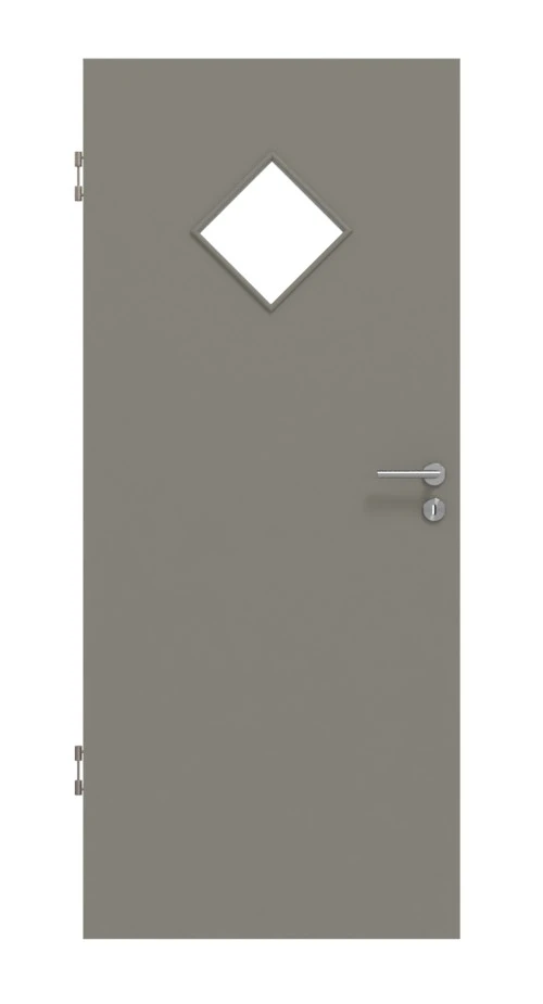 Der Lichtausschnitt in Rauten-Form ist das optische Highlight des Türblatts. Er ist eine interessante Alternative zum Bullauge und lässt ein wenig Helligkeit in Ihren Raum.