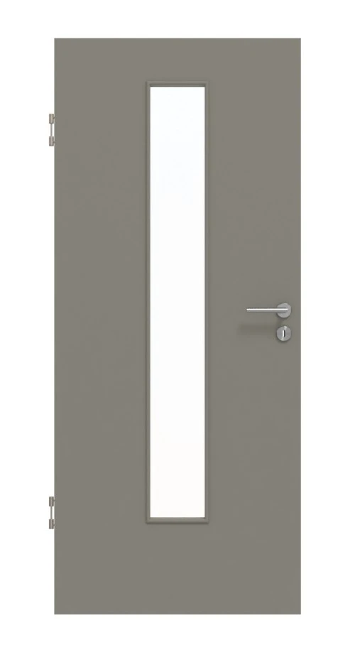Ein elegantes Finish erzeugt die matte Lackierung in grau. Der neutrale Ton passt sich jedem Wohnraumambiente bestens an. In der Mitte befindet sich ein Glasausschnitt, durch den Licht in Ihre Räume dringt.