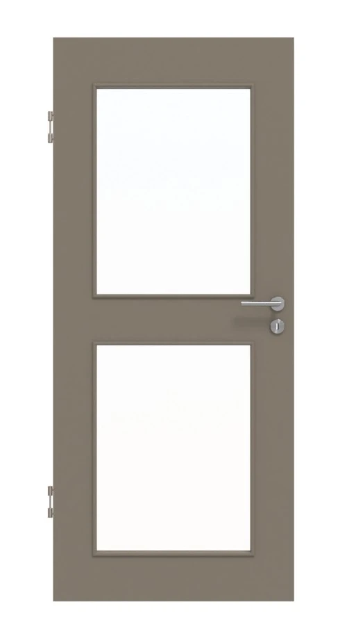 Das seidenmatte Lackfinish kommt in der natürlichen Farbe Taupe daher. Der erdige Ton bringt Natürlichkeit in Ihr Zuhause. Dank der beiden großen Glasausschnitte können Sie sich über lichtdurchflutete Räume freuen.