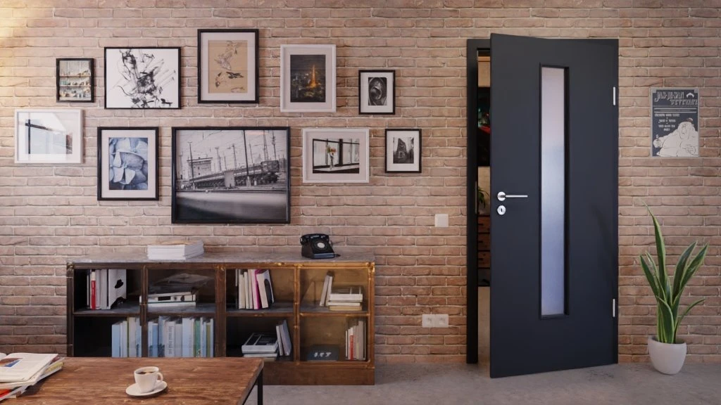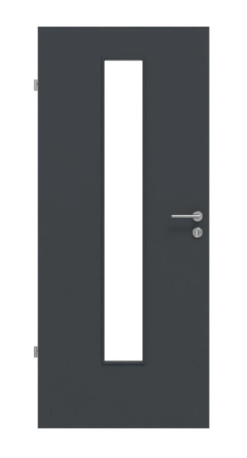 In das matt gestaltete Türblatt ist ein schmaler Lichtausschnitt eingelassen. Die stilvolle Oberfläche ist widerstandsfähig gegen Fingerabdrücke und Verschmutzungen.