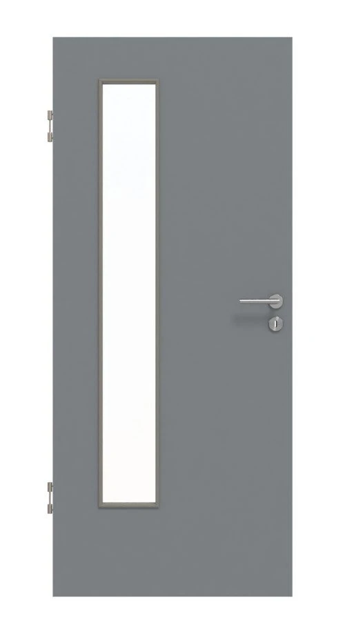 An der seidenmatten Oberflächengestaltung können Sie sich dank der hohen Resistenz gegen Schmutz und Fingerabdrücke lange erfreuen. Durch den schmalen Glasausschnitt auf der Bandseite des Türblatts dringt viel Licht in Ihre Räume.