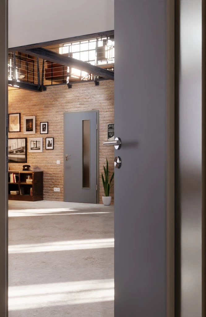 Langlebiges Türmodell im schicken Look: Mit der Innentür LA 24 bandseitig in Ultramatt Staubgrau aus der Reihe Proline Concepto von Hörmann setzen Sie auf lange Haltbarkeit und ein elegantes Design.