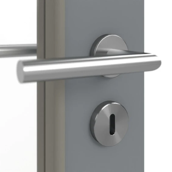 Die graue Oberfläche besticht durch einen seidenmatten Glanz, an dem Sie sich dank der hohen Widerstandsfähigkeit gegen Fingerabdrücke und Schmutz lange erfreuen können. Der große Glasausschnitt sorgt für lichtdurchflutete Räume.