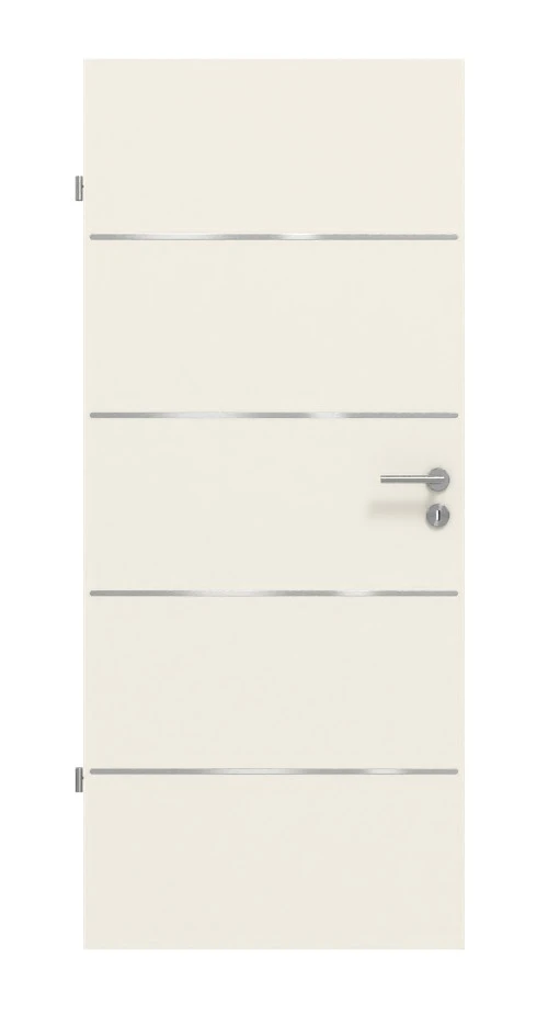 Für einen modernen Look, der jedem Wohnraumdesign einen eleganten Touch verleiht, sorgt die weiße Farbgebung der hochwertigen Oberfläche. Eine persönliche Note erhält das Türblatt dank der vier Lisenen, die waagerecht über das Türblatt verlaufen.