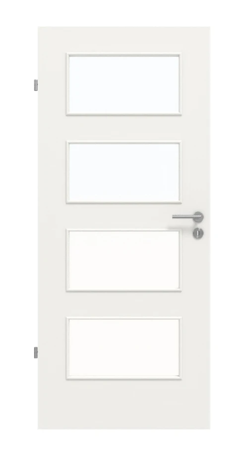 Vier rechteckige Lichtausschnitte lassen nicht nur viel Helligkeit durch, sondern verzieren das Türblatt auch auf angenehme Art und Weise.