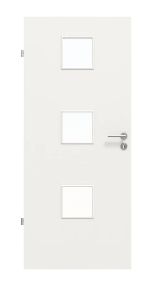 Im Türblatt befinden sich drei kleinere, quadratische Lichtausschnitte, die in Kombination eine interessante Optik ergeben. Dadurch gelangt gleichzeitig auch etwas Helligkeit in Ihren Raum.