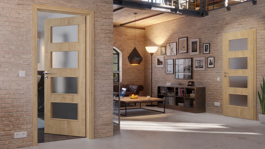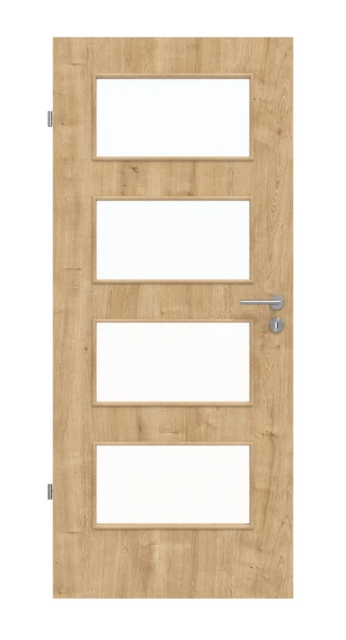 Vier rechteckige Lichtausschnitte lassen nicht nur viel Helligkeit durch, sondern verzieren das Türblatt auch auf angenehme Art und Weise.
