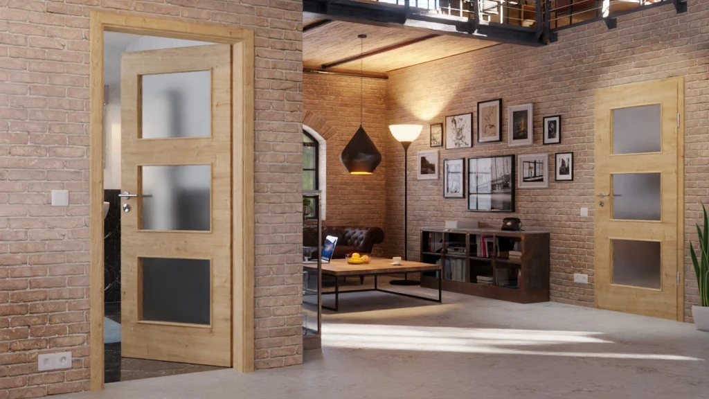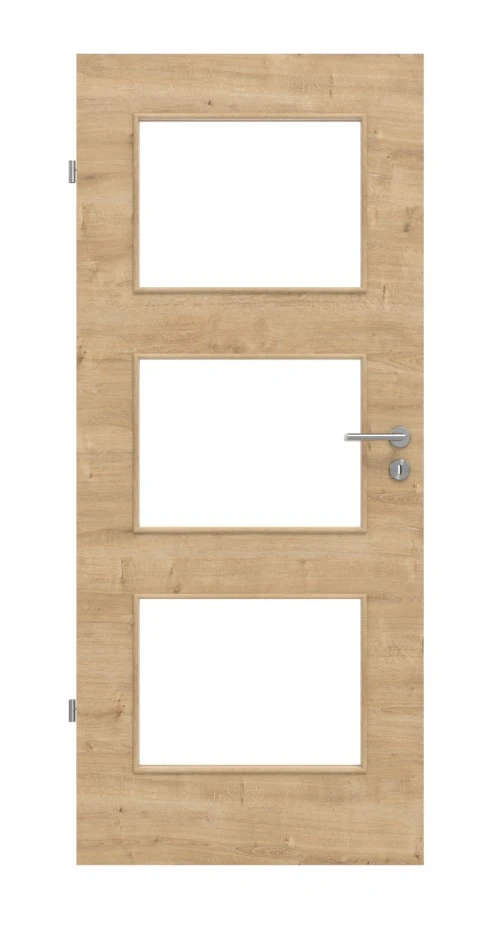 Drei rechteckige Lichtausschnitte erstrecken sich über nahezu das gesamte Türblatt. Dadurch gelangt viel Helligkeit hindurch, was wiederum zu einer harmonischen Gesamtstimmung beiträgt.