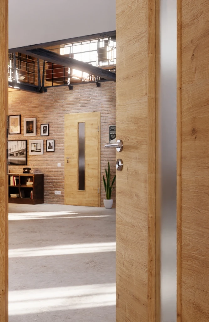 Der lange, schmale Lichtausschnitt in der Mitte des Türblatts lässt etwas Helligkeit in Ihren Raum. Außerdem bildet er einen sehenswerten Hingucker, der die Gesamtoptik erfrischend auflockert.