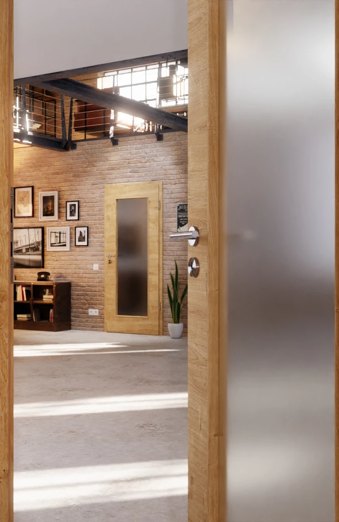 Der Glasausschnitt erstreckt sich über nahezu das gesamte Türblatt. Dadurch gewährleistet er einen massiven Helligkeitseinfall und generiert auf diese Art und Weise einen lichtdurchfluteten Raum.