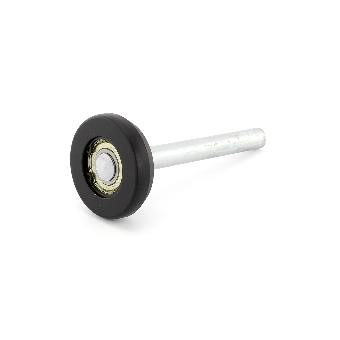 Die eigentliche Rolle aus Kunststoff hat bei den DF95 u. 98er Toren einen Außendurchmesser von ca. 61 mm, womit sie hervorragend in die Laufschienen passt. Die mit einem Kugellager ausgestattete Hörmann Laufrolle Berry Schwingtor DF95/DF98 ist weiterhin an eine ca. 125 mm lange Achse angebracht. Diese hat dann auf einer Länge von 115 mm einen Durchmesser von nur 14 mm, so dass sich die Achse einfach in den Rollenhalter einschieben lässt.