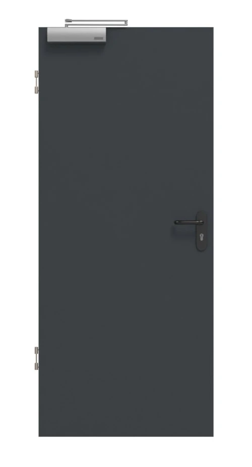 - Lieferumfang: Türblatt, Profilzylinderschloss, 2x Objektbänder, schwarzer Kunststoffdrücker, Obentürschließer, absenkbare Bodendichtung