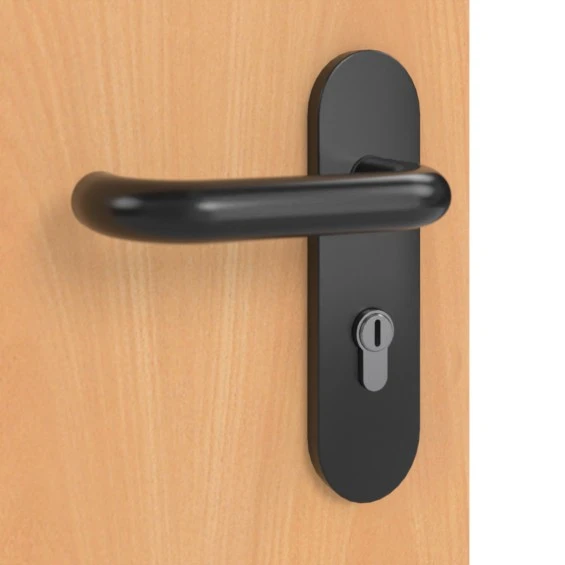 - Lieferumfang: Türblatt, Profilzylinderschloss, 2x dreiteilige Bänder, schwarzer Kunststoffdrücker, Obentürschließer, absenkbare Bodendichtung