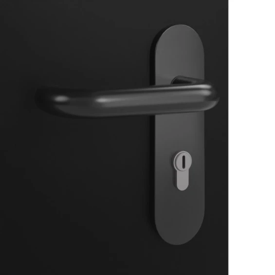 - Lieferumfang: Türblatt, Profilzylinderschloss, 2x dreiteilige Bänder, schwarzer Kunststoffdrücker, Obentürschließer, absenkbare Bodendichtung